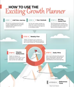 The exciting growth planner helps you think about your life dreams and establish annual and quarterly targets. Then it enables you to bring those intentions into reality by integrating them into your weekly and daily action items. Download a copy, and start leveraging the planner as part of your quarterly planning and daily reflections process.
